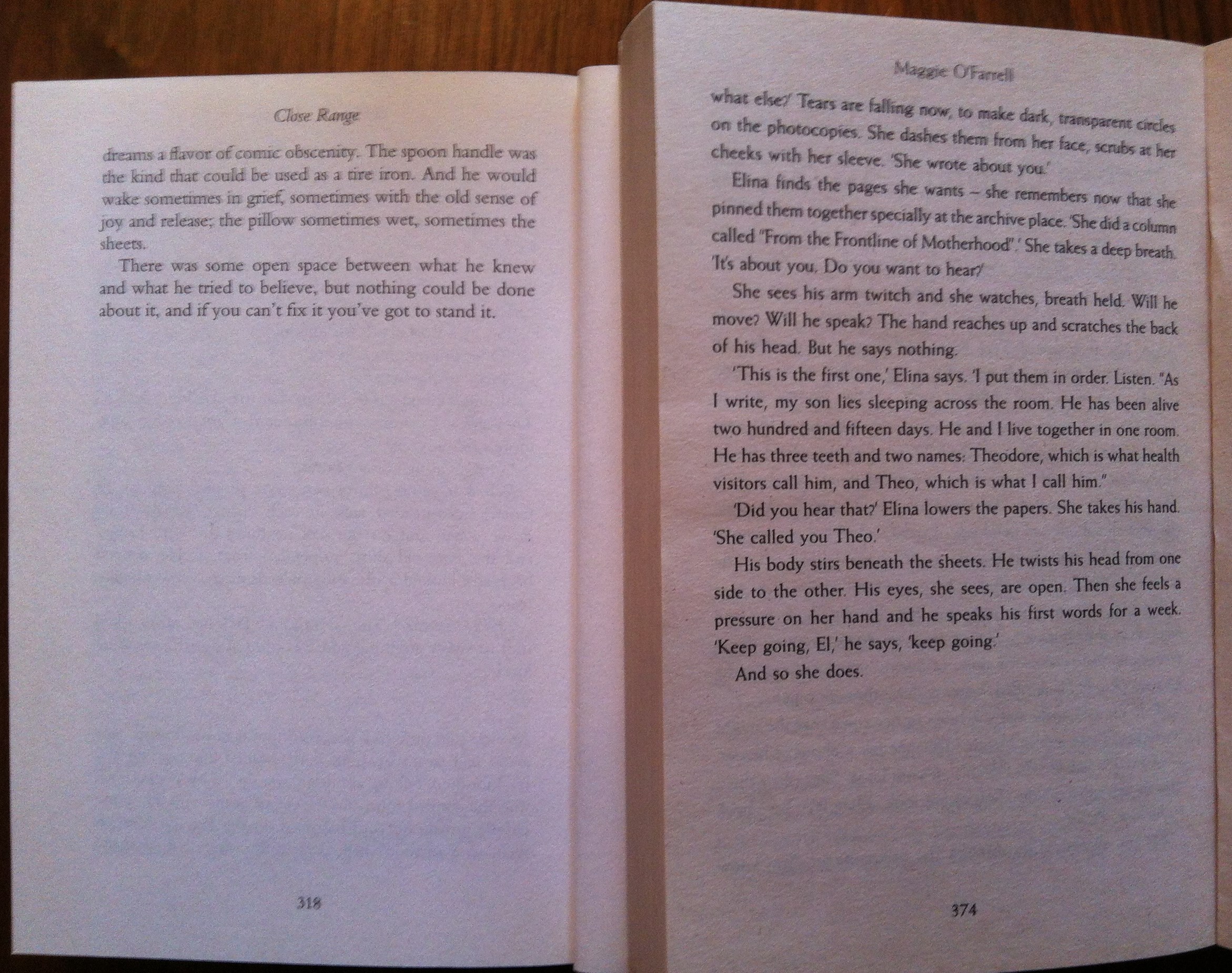 Secondly, The Hand that First Held Mine by Maggie O’Farrell. I read this fairly recently, and I found the last lines quite moving, so I thought I’d include them here. They are:
